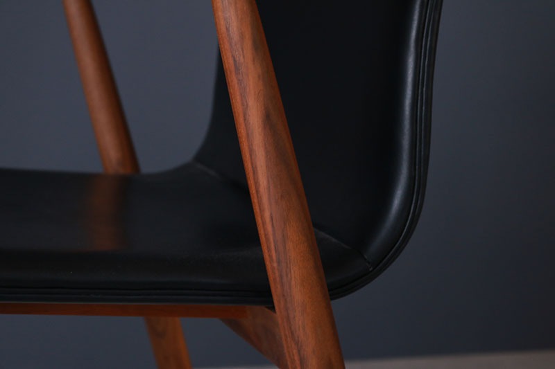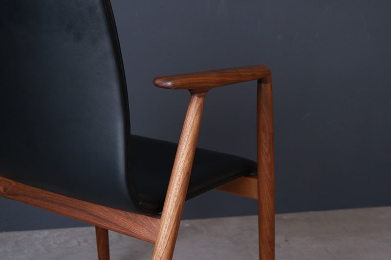 座のどの部分を切ってもまったく同じ断面が存在しない連続したラインが特徴のデザイン。 木部はどこに触れても手に優しく、成形の背の弾力で疲れを感じさせない座り心地です。 ファブリックの違いで驚く程印象が変わります。
