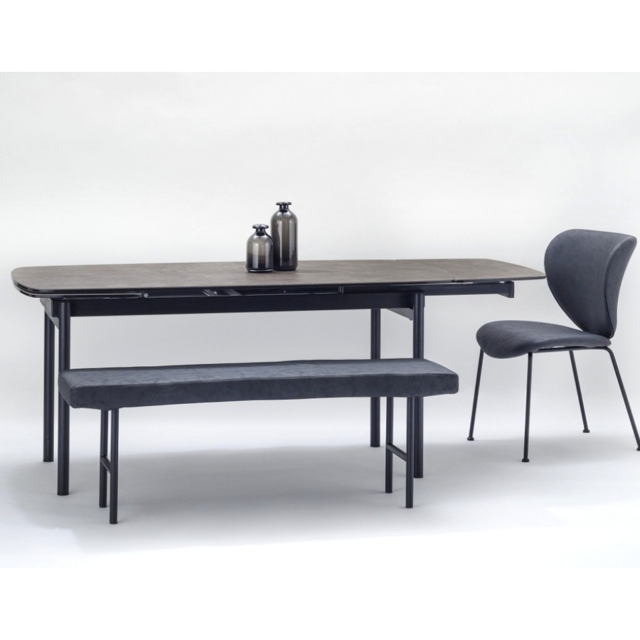 様々なデザインのダイニングテーブルと合 わせやすいシンプルなデザインのベンチ。 程よいクッション性があります。 張り地は *Storm-プレミアム PU。 イージーケア且つ強度に優れ、化学物質も極小のため、お子様にも安心してお使いいただけます。