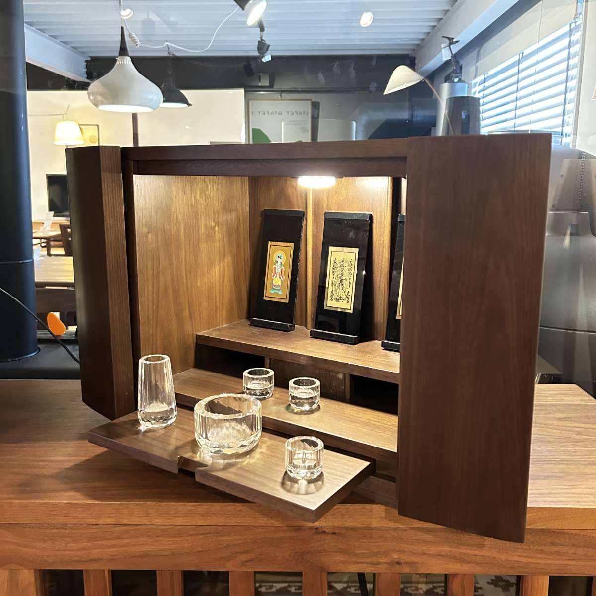 【おしゃれで小さい仏壇】コンパクト上置タイプ(ウォールナット)MC-009-14