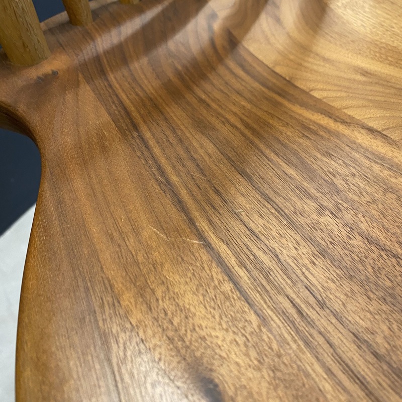 座面は座繰り加工という特殊な技法を用い、長時間座っていても疲れにくい構造になっています。