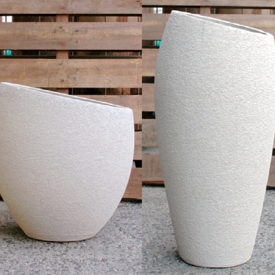 プレーンなデザインと粗く仕上げたテクスチャーが、ナチュラルにもモダンにも調和するエコストーン(セメント)のプランターポットです。