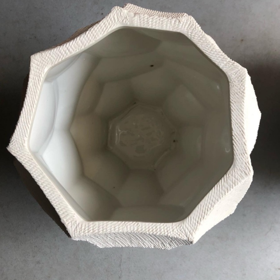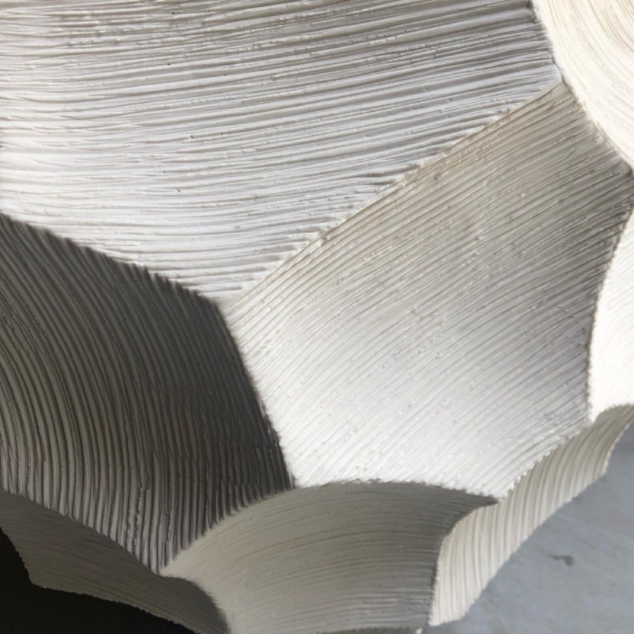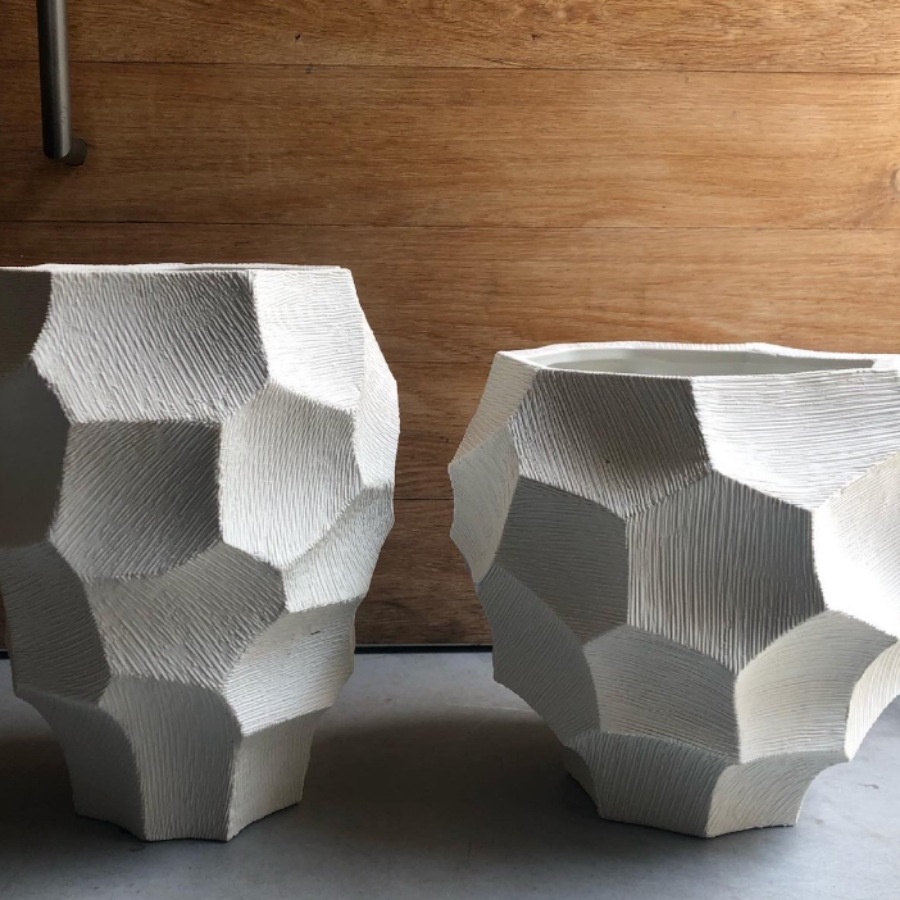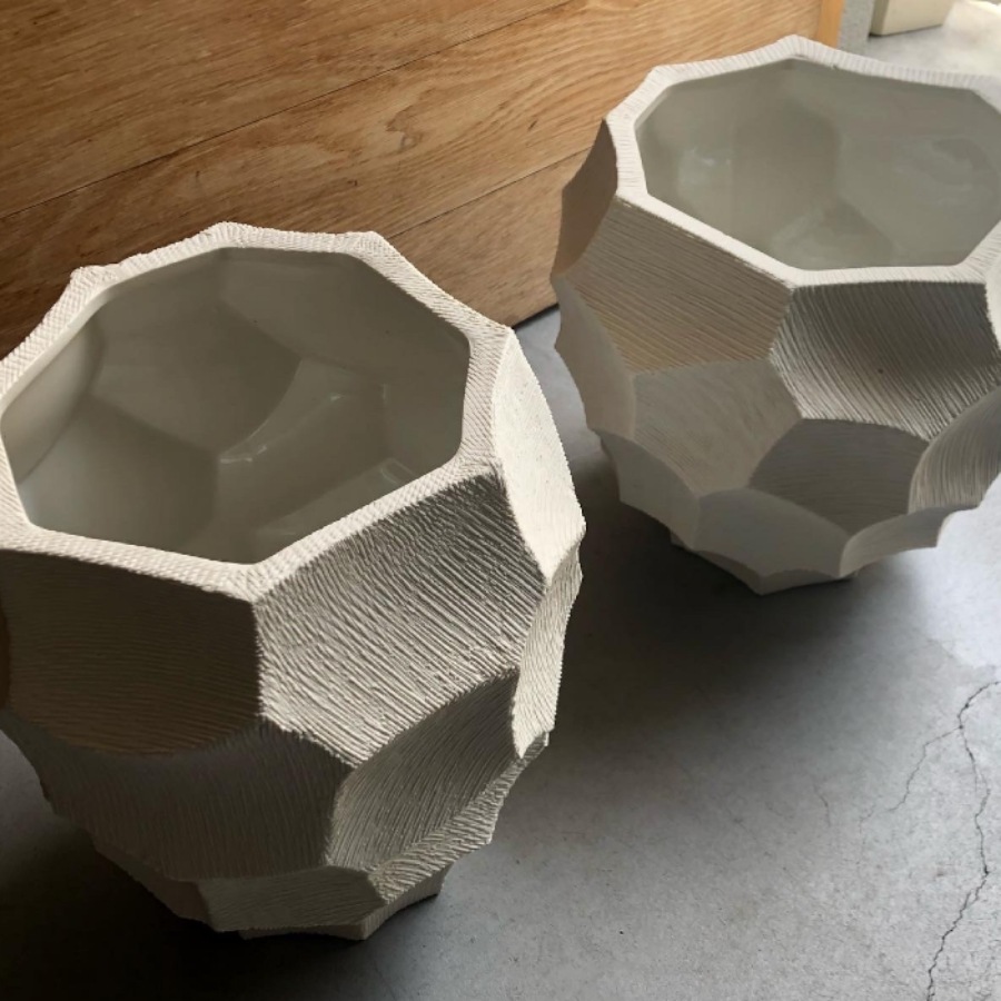 カービングの面には細かなスクラッチ模様のテクスチャーを施しています。ごつごつとしたフォルムですがストーンウェアならではの硬質ですっきりとした 印象を併せ持ち、