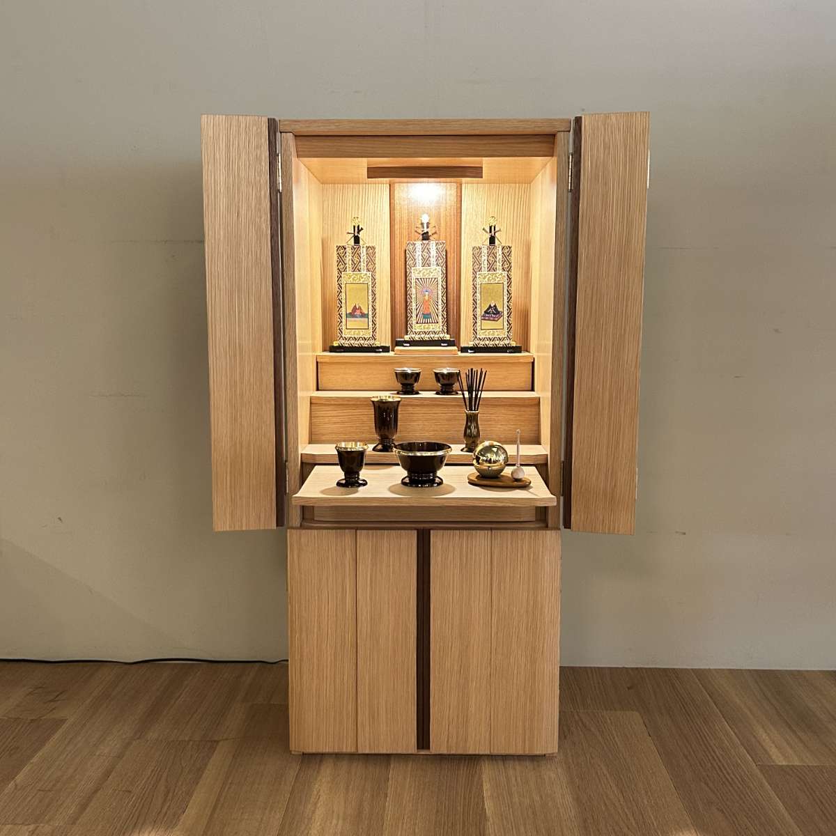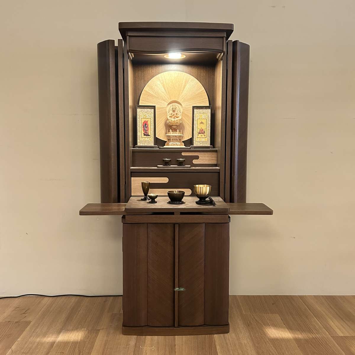 イズミファニチャーが提案するシンプル仏壇は、リビングや落ち着いた和室など、 どの部屋のインテリアとも調和するデザインのものを揃えております。