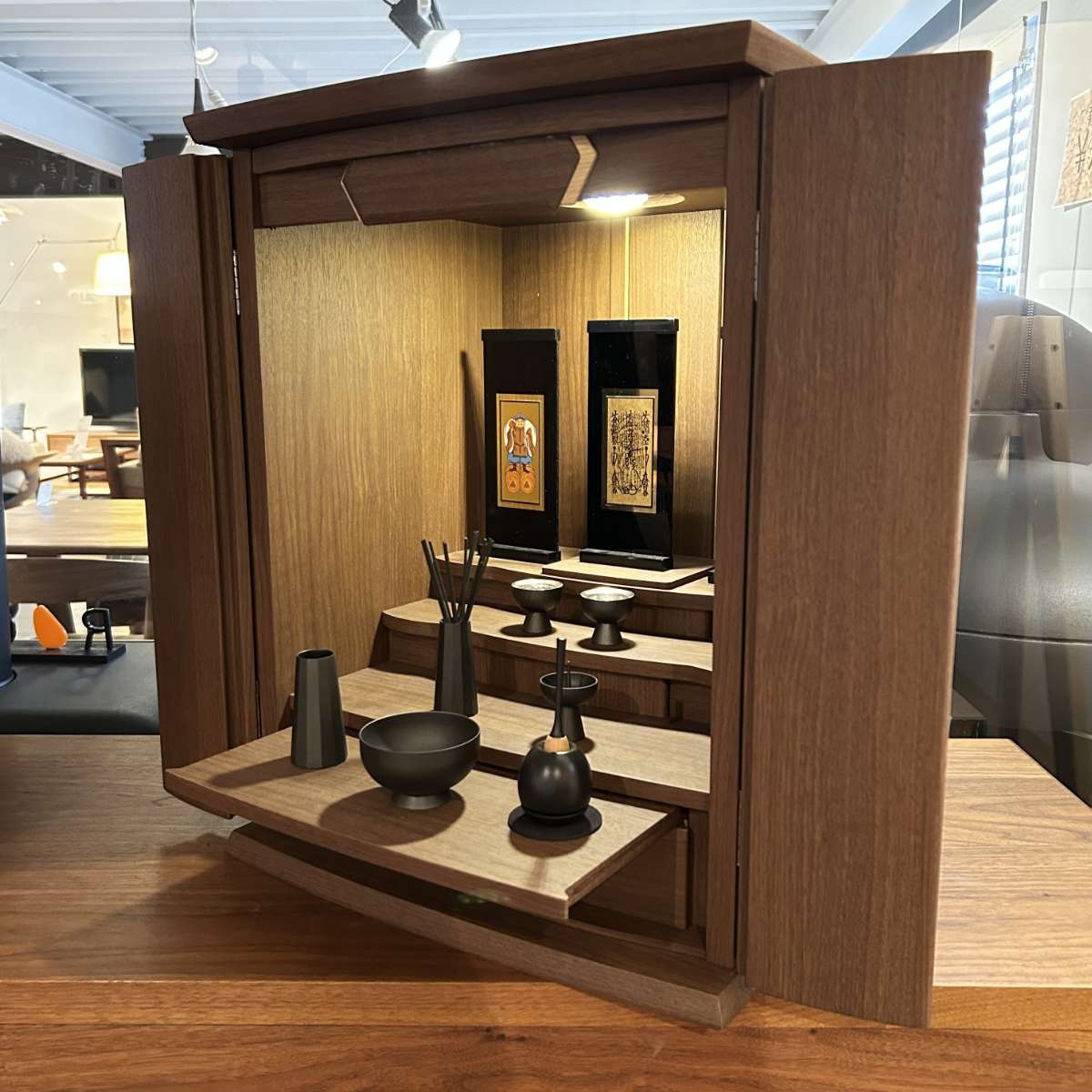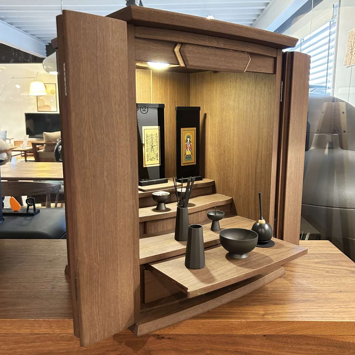 現在の住環境では、仏壇をリビングや居室など暮らしの中に置くことが増えています。それは、和室や仏間の減少だけだはなく、故人への想いを暮らしのそばで感じ、そして伝えたいニーズからです。我々はインテリアショップとして、暮らしに合うコンパクトサイズ、家具との調和、主張しすぎないスッキリとしたデザインをコンセプトに仏壇をセレクトしました。新規ご購入や買い替えをご検討中の方に、インテリアショップらしい「シンプル仏壇」をご提案いたします。