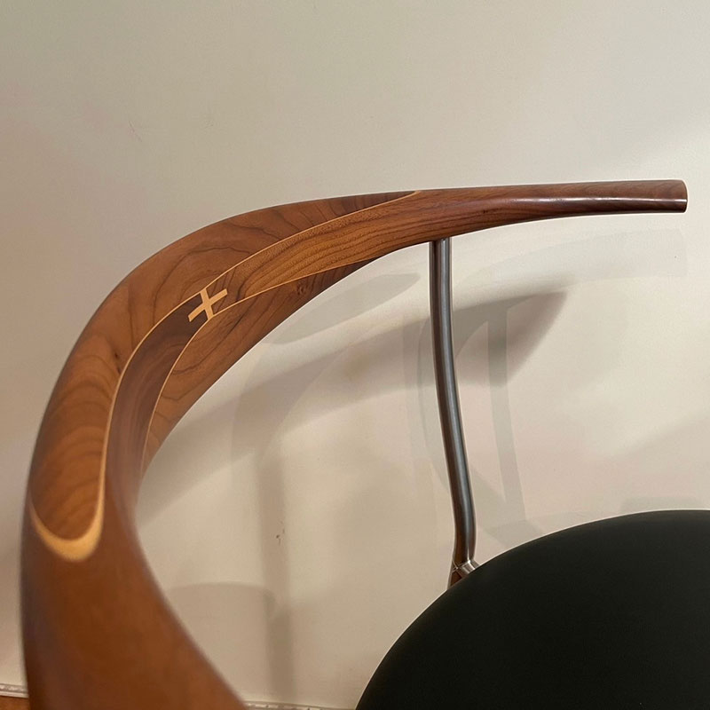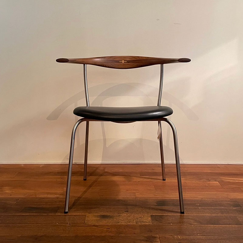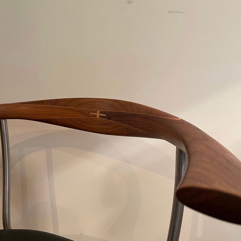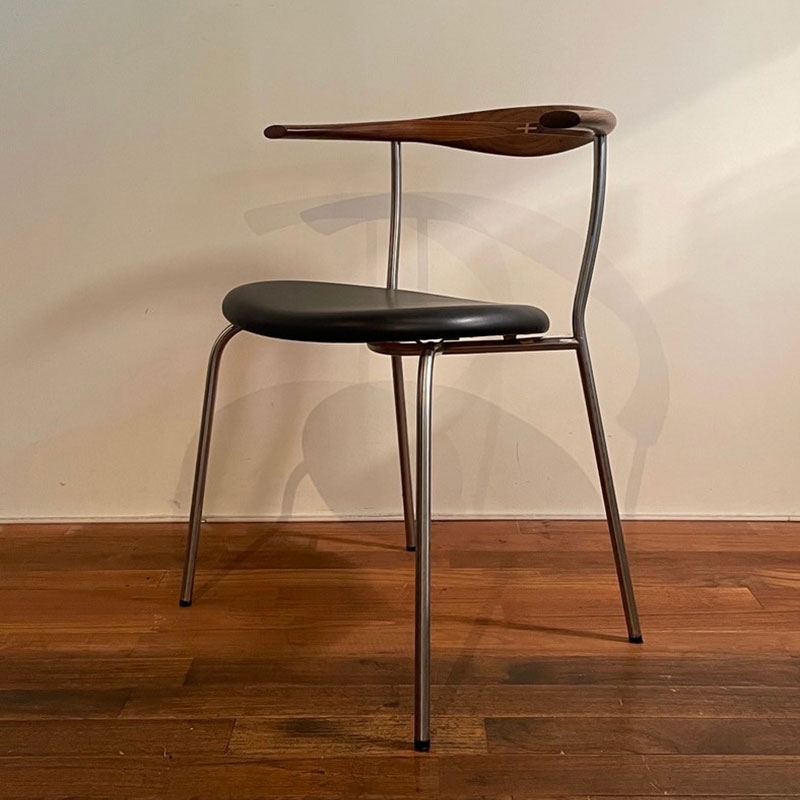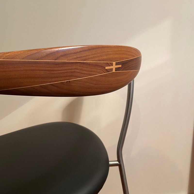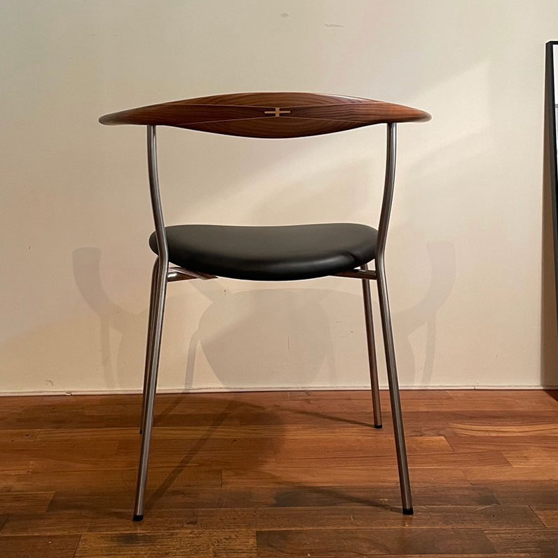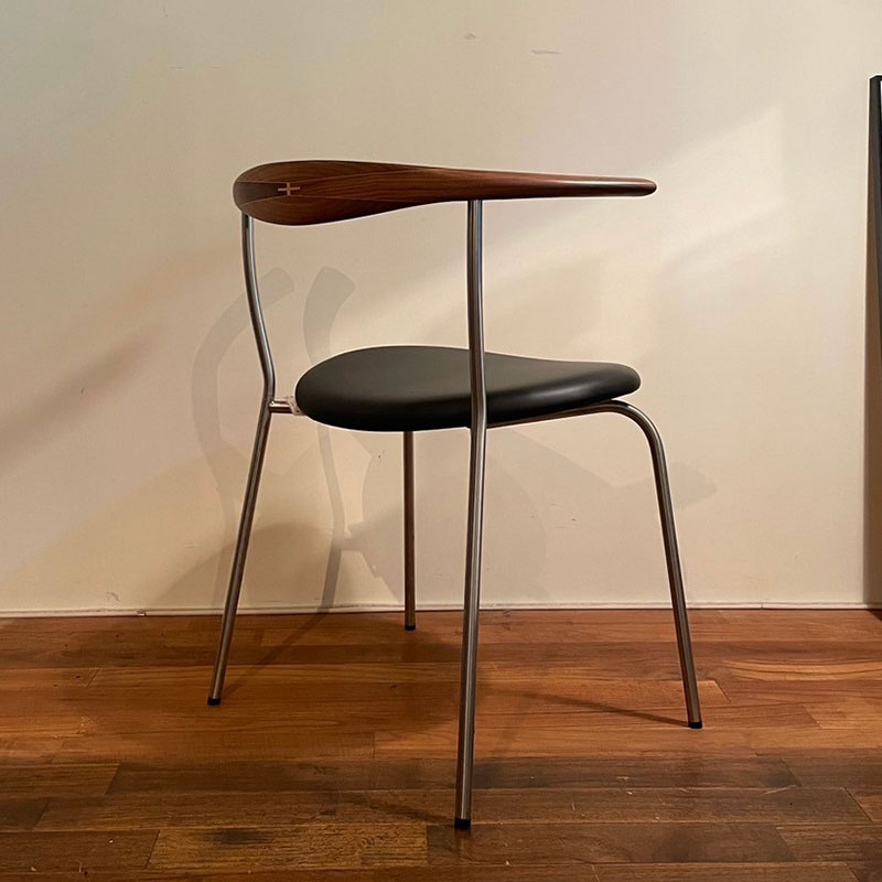 PP701は、上質な木材とステンレス製のフレームを組み合わせることで、温かみと現代的な印象を両立させています。特に、背もたれの十字型の継ぎ目は、熟練の職人が手作業で作り上げており、その繊細な技術と素材へのこだわりが感じられます。」
