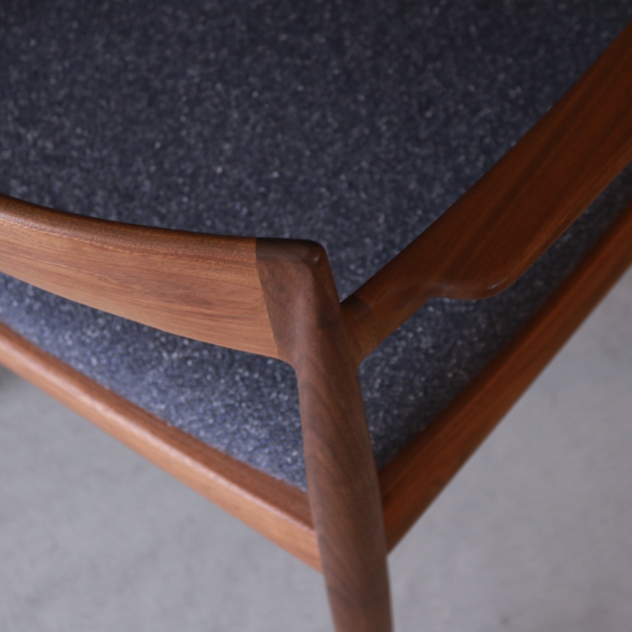 デザインは カイ・クリスチャンセン。“使い手の所作” を丁寧に観察しながら、職人と試作を重ねて完成された椅子。アームの高さ、背の傾斜、脚の角度までが人の動作に沿って緻密に設計されており、ただのデザイン家具ではなく「生活道具」としての完成度が高いです。