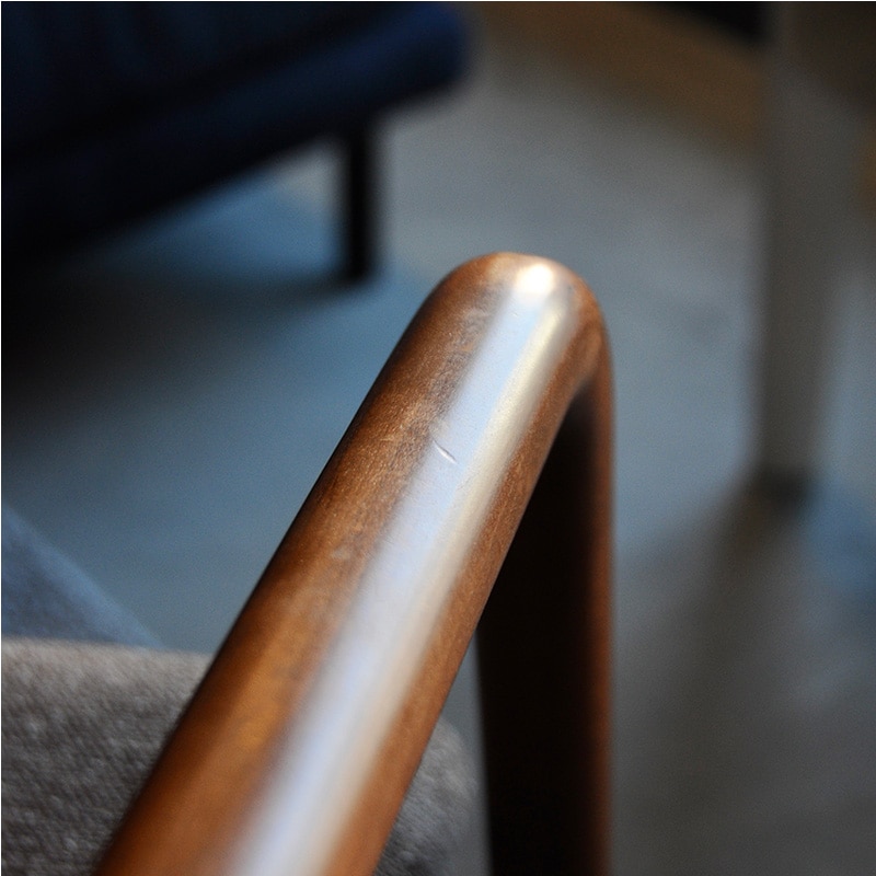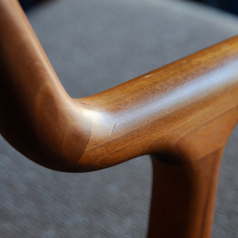 フレームの脚先部分の断面は円形でアーム部分では丸四角になり、背の先端部分では再び円形に戻るという変化を持たせています。」