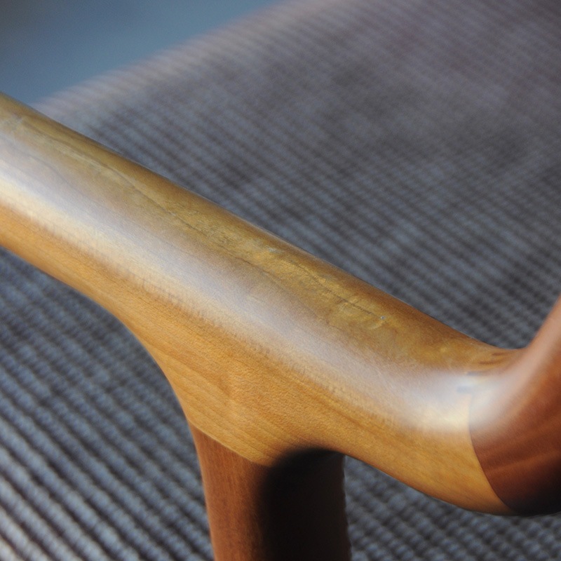 フレームの脚先部分の断面は円形でアーム部分では丸四角になり、背の先端部分では再び円形に戻るという変化を持たせています。」